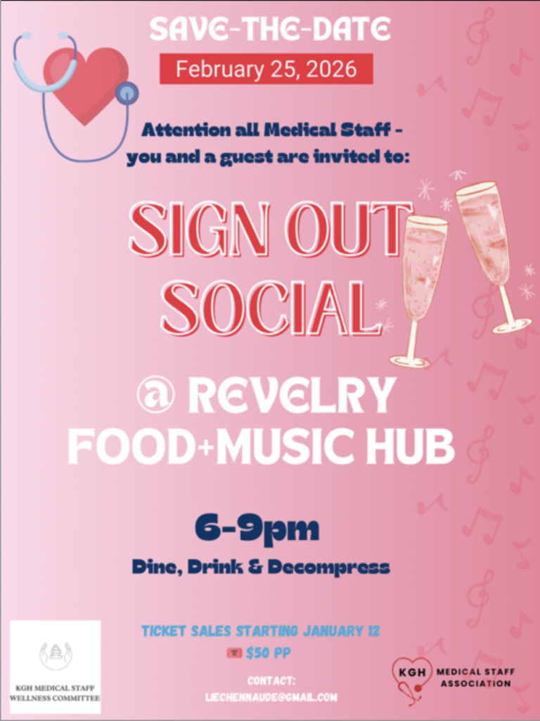 ATTENTION ALL MEDICAL STAFF- you and a guest are invited to SIGN OUT SOCIAL @ Revelry.
